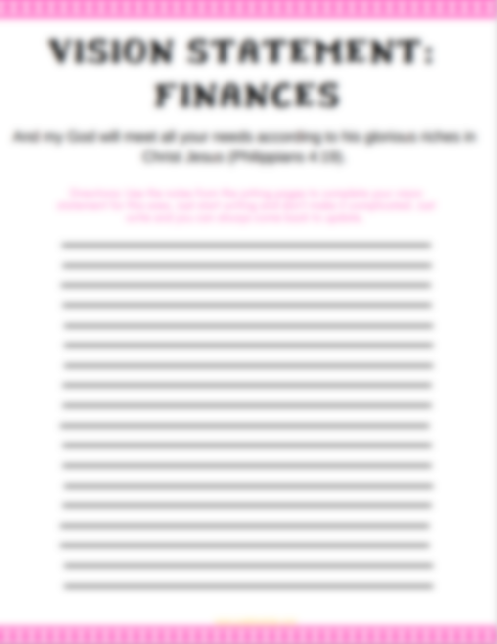 This downloadable e-workbook was created to help you visualize, plan, & create your dream life. You were created to live a life of abundance in all areas of your life and this book with help you start on that journey. It's time for you to live the life that God ordained for you to live.