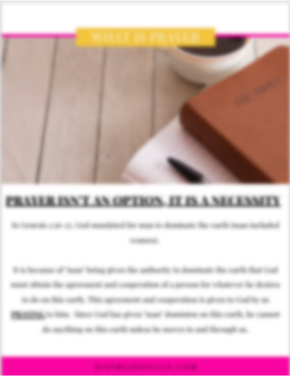 Praying is an essential part of our walk with Christ. It is through prayer that you can build your relationship with God. This 19 page eBook was created to help you build your prayer life and to help you walk in your God given authority. This book includes 10 prayers to guide you on your daily prayer walk. Make today the day that you decide to make prayer a part of your everyday.